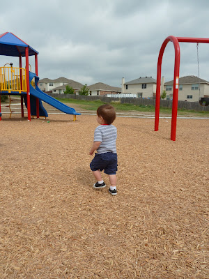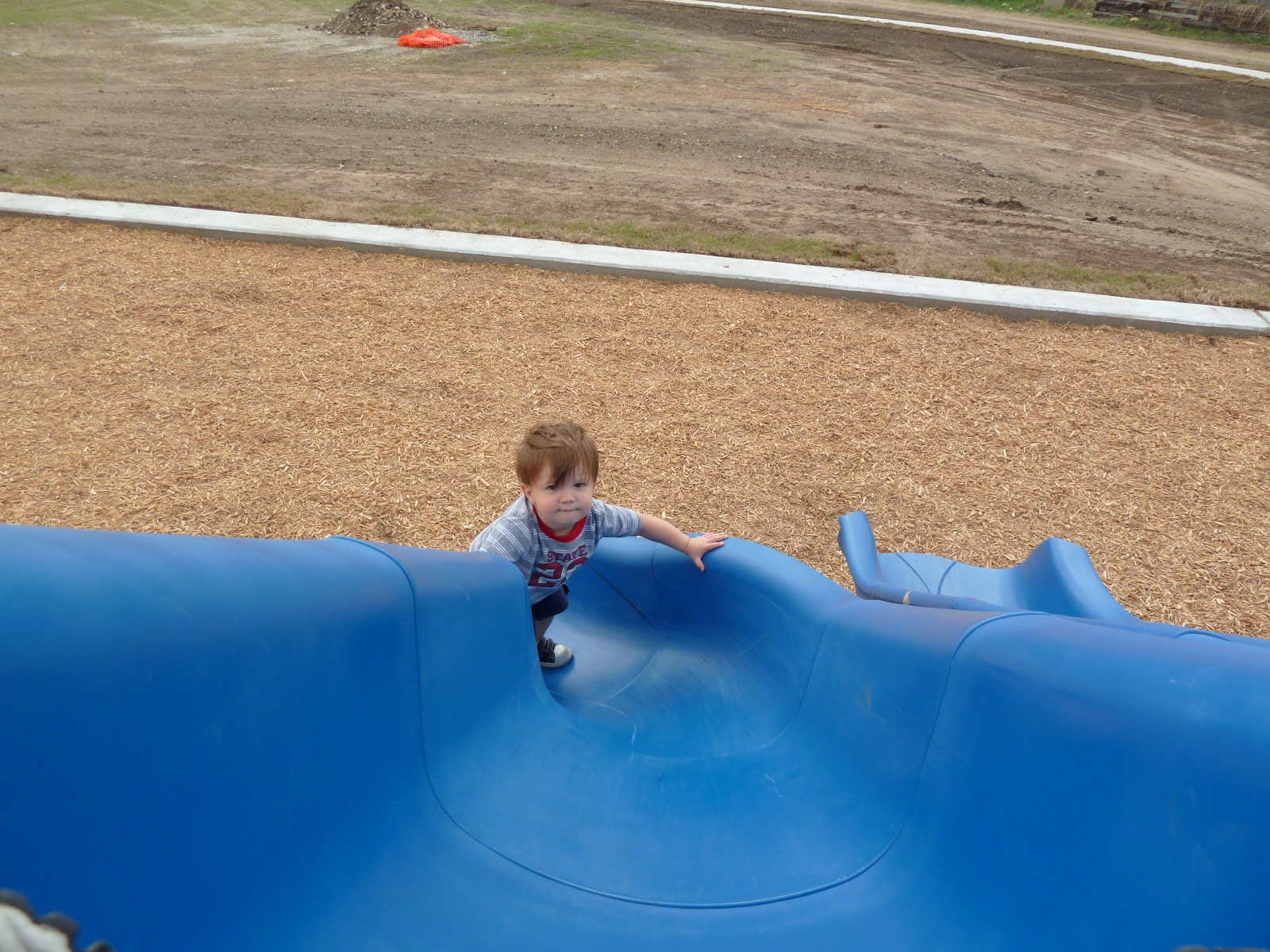 He loved the slides. Sliding down them, trying to crawl back up, climbing the stares to the top of the slides, pretty much everything about them.